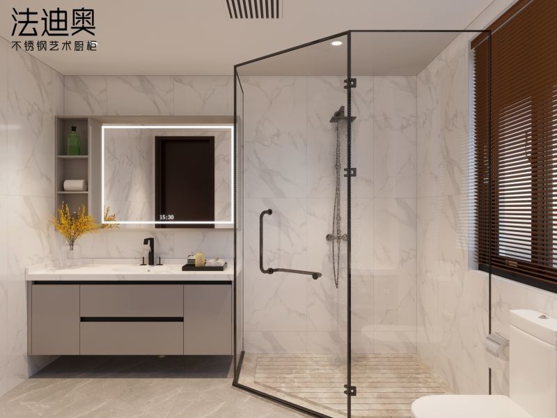 | Hỏi: Tủ lavabo phòng tắm bằng thép không gỉ này chủ yếu mang tính trang trí hay thực sự sẵn sàng cho dự án? Nó được xem là sẵn sàng cho dự án vì trang vẫn liên kết phong cách với cấu trúc tủ bằng thép không gỉ cao cấp, mặt bàn đá thạch anh trắng và kế hoạch thiết bị. Điều này giữ cho ngôn ngữ thiết kế gắn liền với logic thực thi. |