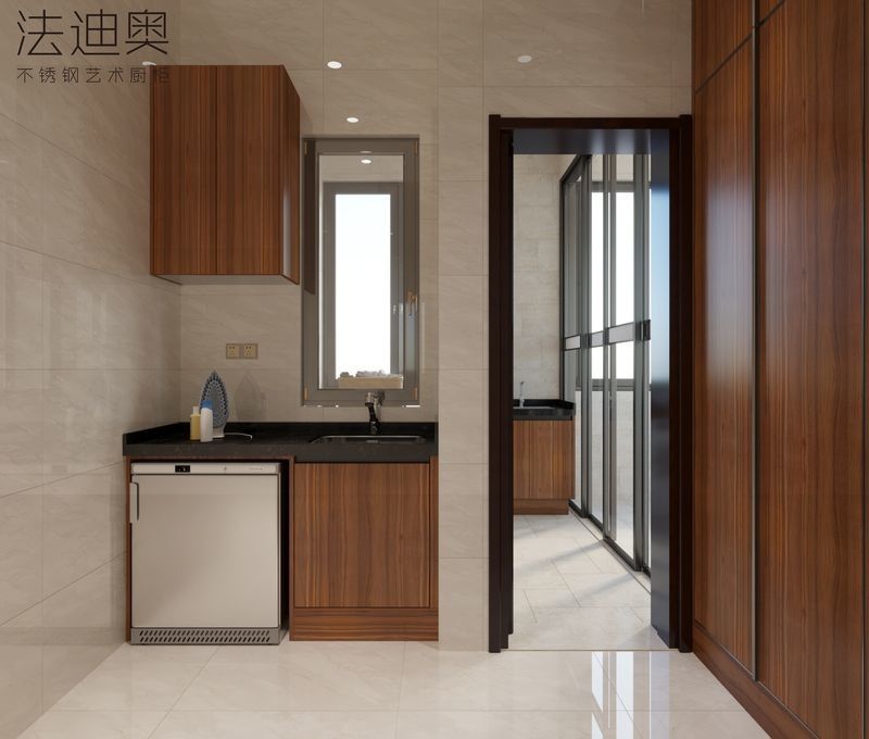 Tủ giặt tùy chỉnh này được xây dựng dựa trên chiến lược hoàn thiện khác biệt: Vân gỗ kết hợp với cấu trúc tủ thép không gỉ. Sự kết hợp đó mang lại cho người mua một biểu hiện sang trọng ấm áp hơn mà không làm mất đi khả năng làm sạch và độ bền của dự án vốn có của tủ thép không gỉ.