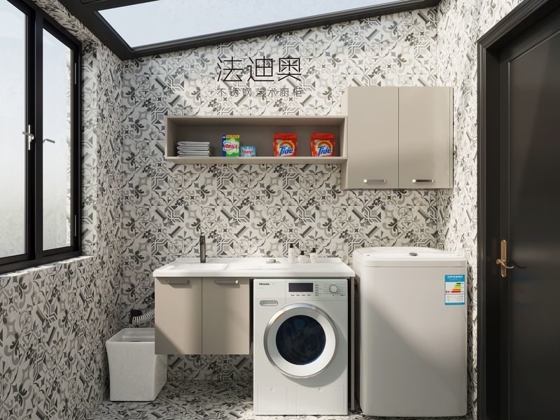 | Khu vực máy giặt | Được thiết kế để lắp đặt máy giặt cửa trước, cung cấp không gian chức năng cho các công việc giặt giũ. |