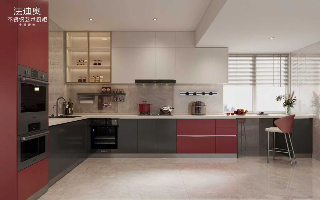 | Q: Những tín hiệu tùy chỉnh nào đã hiển thị trên trang Tủ bếp thép không gỉ không gian mở đô thị màu đỏ rượu vang này? Các tín hiệu rõ ràng nhất là phối hợp kích thước, màu xám và lập kế hoạch lưu trữ. Những gợi ý đó giúp người mua đánh giá xem nhà cung cấp có thể điều chỉnh sản phẩm cho phù hợp với dự án hay không thay vì vận chuyển một mô-đun bán lẻ cố định. |