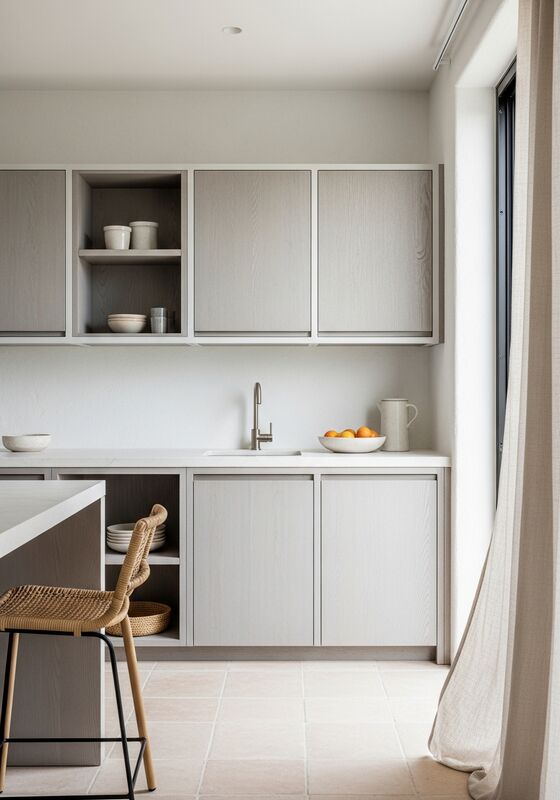 | Điểm nổi bật của thiết kếTối thiểu hóa ven biển được tẩy nắng với kết cấu vật liệu có thể nhìn thấy và hướng bề mặt khô mờ với các tấm màu bạc xám màu trắng, khung phủ bột màu trắng ấm,vải lanh tự nhiên và terracotta nhạt phụ kiện bối cảnh, tỷ lệ kỷ luật, và khung thép không gỉ 304 với các tấm phủ bột hạt gỗ cốt trắng. |