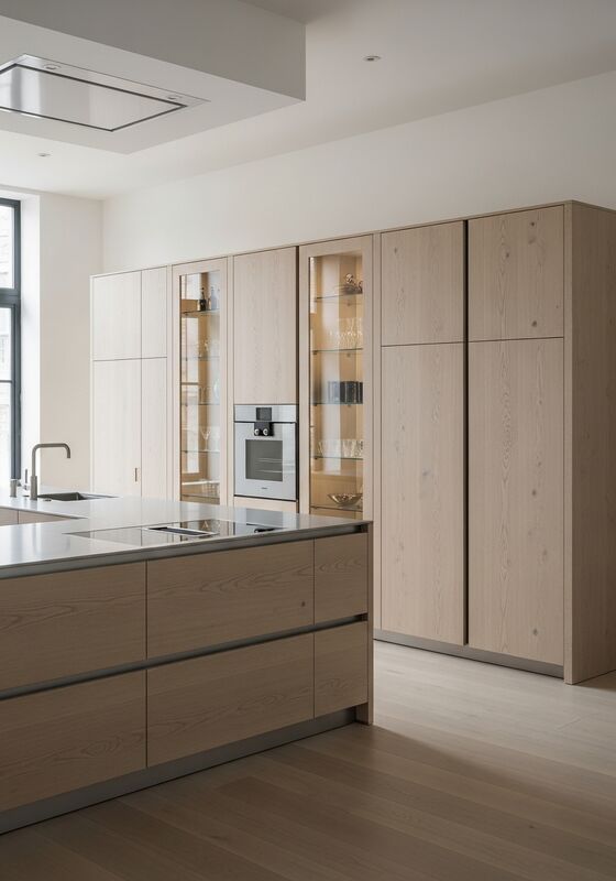 | Vật liệu & Hiệu suấtHệ thống cấu trúc thép không gỉ loại 304 với veneer gỗ sồi trắng châu Âu được cưa một phần (cực mờ, gần không tỏa sáng), các tấm nhấn mạnh sơn trắng mờ (làm xong vỏ trứng),thủy tinh nổi trong suốt với các cạnh đánh bóng hỗ trợ chống ẩm, kết thúc ổn định, và sử dụng hàng ngày lâu dài trong nhà bếp dân cư cao cấp trong nhà kiến trúc sư thiết kế, nơi cư trú của nhà sưu tập nghệ thuật, không gian sống liền kề phòng trưng bày và các dự án đòi hỏi sự tĩnh lặng,tủ tối đa hóa ánh sángĐiều đó quan trọng khi người mua cần một cái nhìn kiến trúc mà không có rủi ro bảo trì bằng gỗ. |