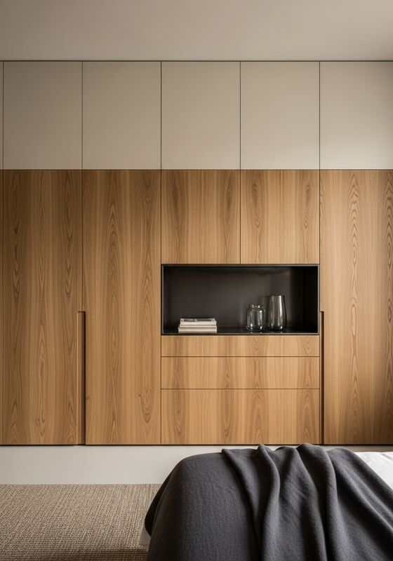 | Vật liệu & Hiệu suấtHệ thống kết cấu thép không gỉ cấp thực phẩm 304 với veneer gỗ sồi Nhật Bản được chứng nhận FSC (vân thẳng, mờ dầu), khung viền thép oxy hóa màu đen hỗ trợ chống ẩm, ổn định bề mặt và sử dụng hàng ngày lâu dài trong tủ quần áo phòng ngủ chính cho các căn hộ cao cấp, phòng khách sạn boutique và nhà ở tối giản được thiết kế bởi kiến trúc sư. Điều này quan trọng khi người mua cần vẻ ngoài kiến trúc mà không có rủi ro bảo trì dựa trên gỗ. |